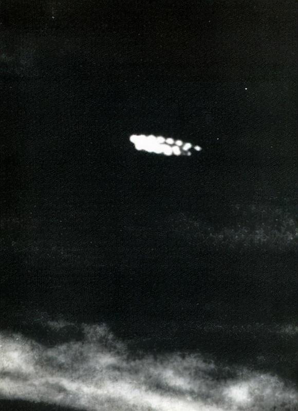在日本拍摄的众多不明飞行物的照片之一:1958年,飞行物体出现在开埠上空。